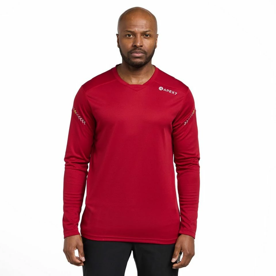 Made from APEX7’s technical polyester fabric, the Lithium riding jersey is designed to breathe and wick-away sweat on the trail to keep you cool, whatever the incline. Flatlock seams add to this technical top’s comfort factor, especially when mountain biking with a backpack. If you’re after a little extra warmth for cool days or some protection from trail-side foliage its long sleeves are a must. The Lithium Jersey’s “active fit” isn’t baggy but leaves enough room for unrestricted movement on the bike. Reflective APEX7 branding is a nice touch for night riders and bike commuters.