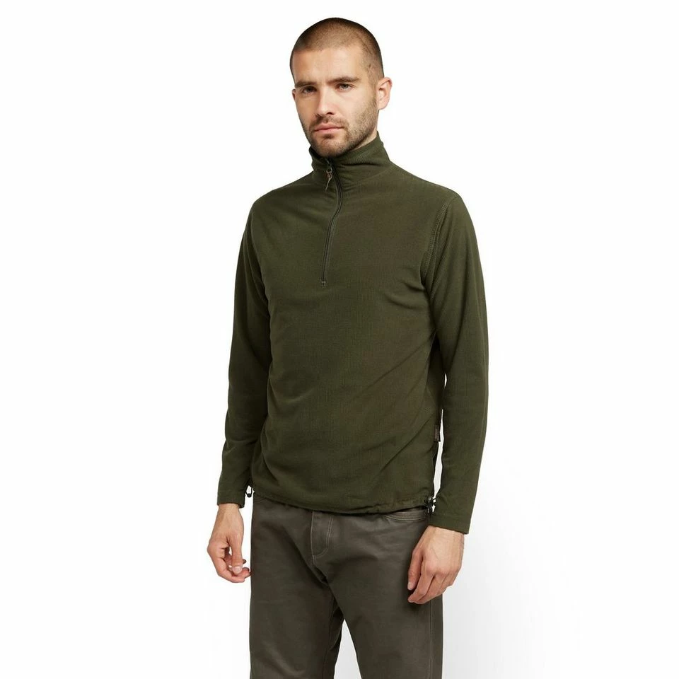 A warm and comfortable midlayer in a muted green colour, ideal for fishing.