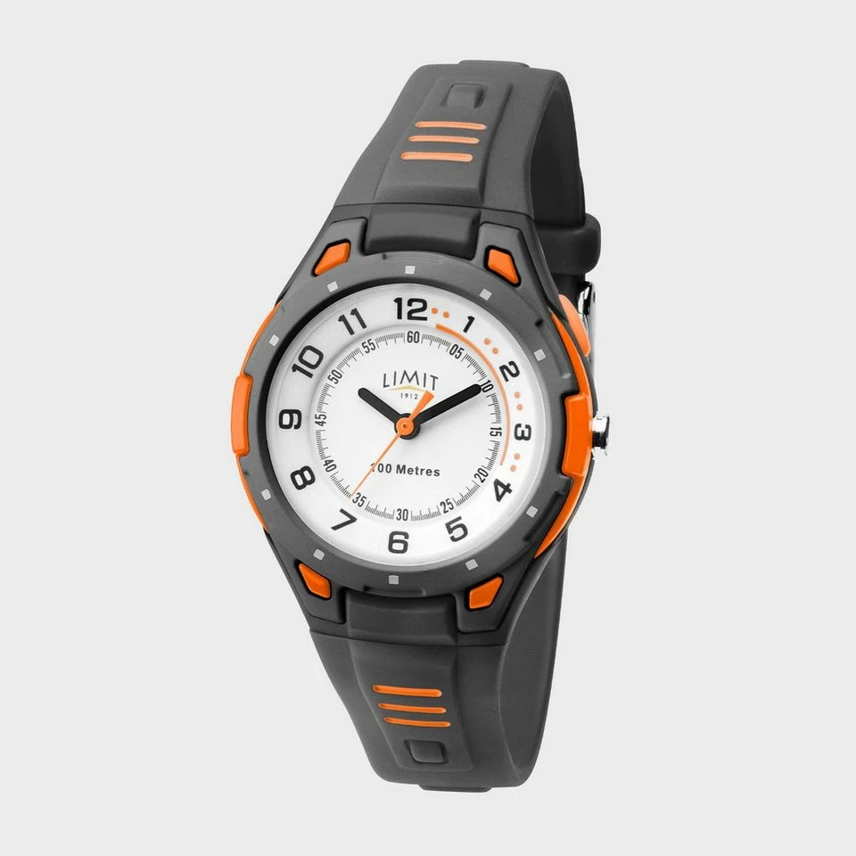 An easy-to-read and waterproof analogue watch with analogue numbers and a durable rubber strap.